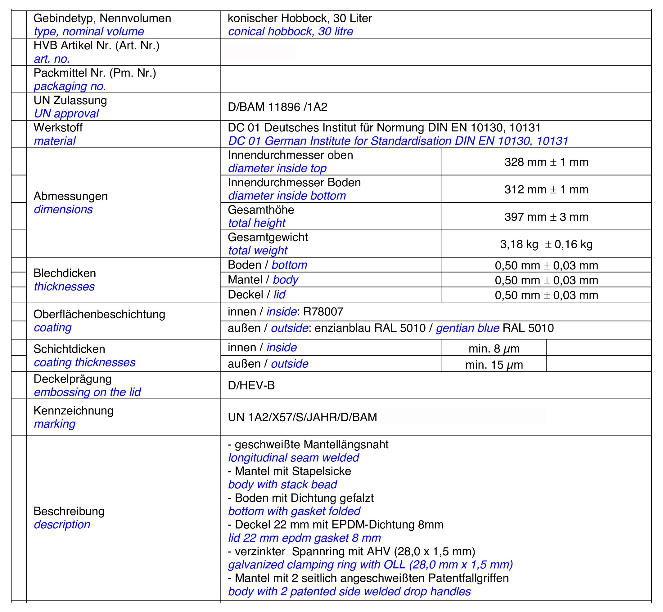 Související odkazy na "Ocelový sud 30 litru Hobbock víko sudový plech kontejner О 2 boční rukojeti Н Zyklon"